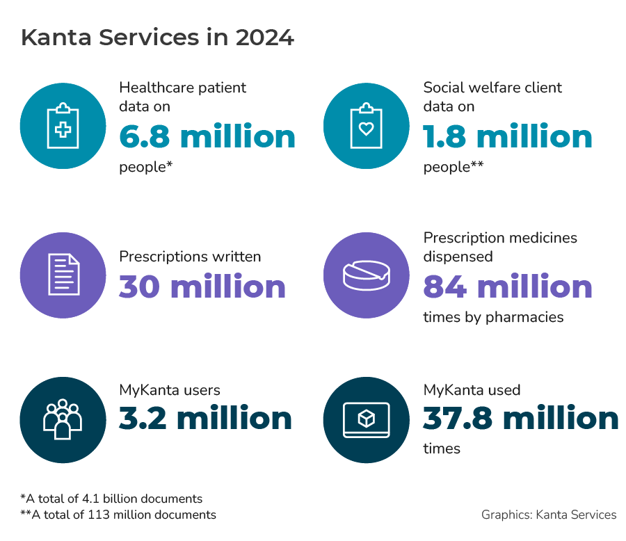 The majority of Finns use MyKanta. In 2024, MyKanta was used by 3.2 million people a total of 38 million times.