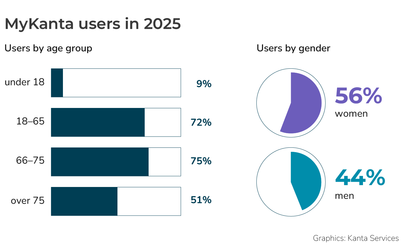 The majority of Finns use MyKanta. In 2024, MyKanta was used by 3.3 million people a total of 41.1 million times.