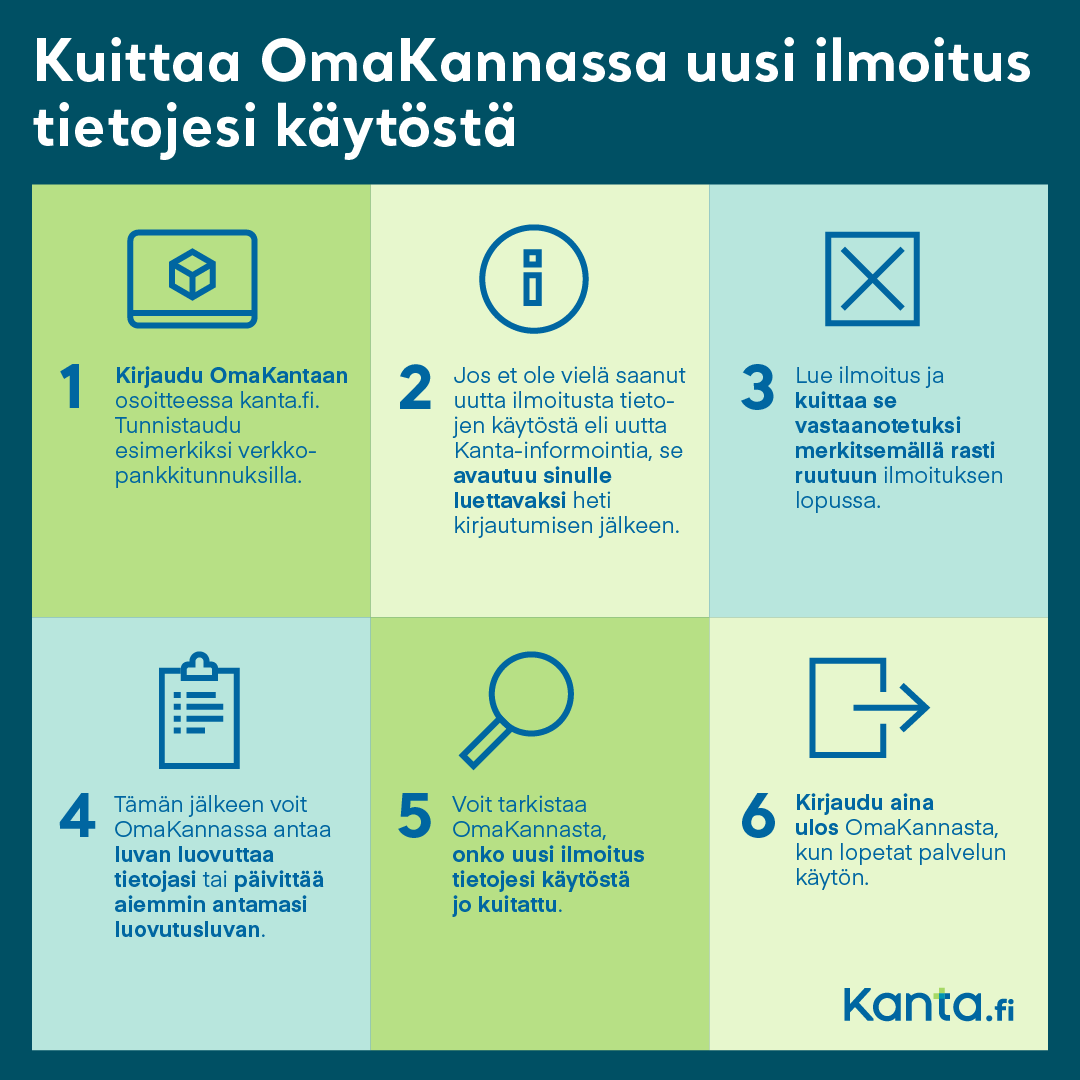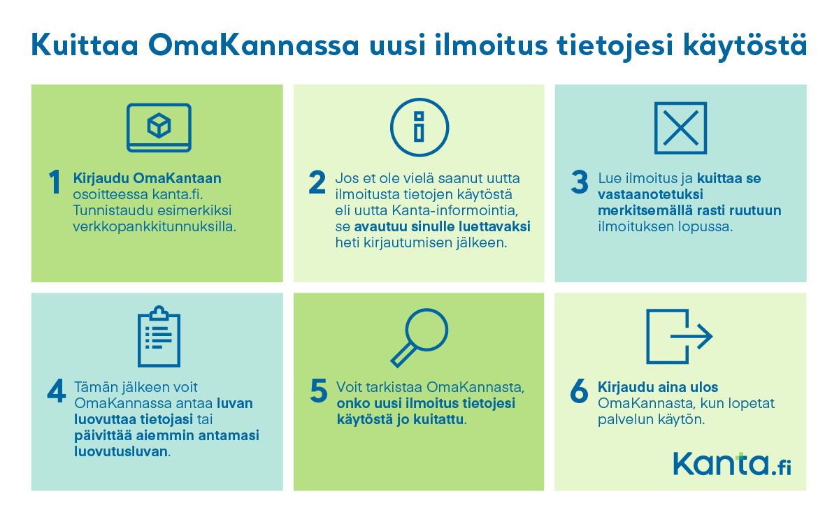 - Infograf över informationen om Kanta-tjänsterna, petrol (png, på finska)(öppnas i ett nytt fönster)