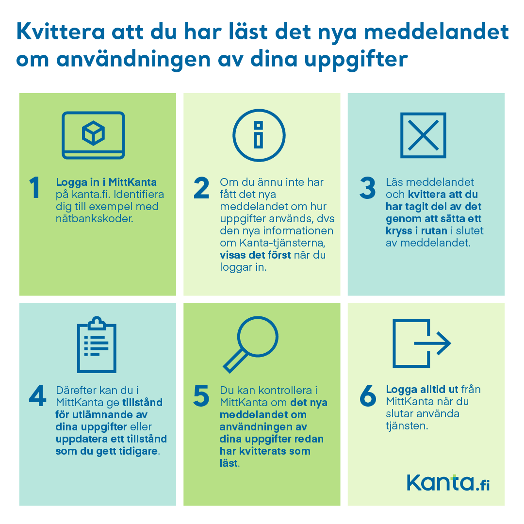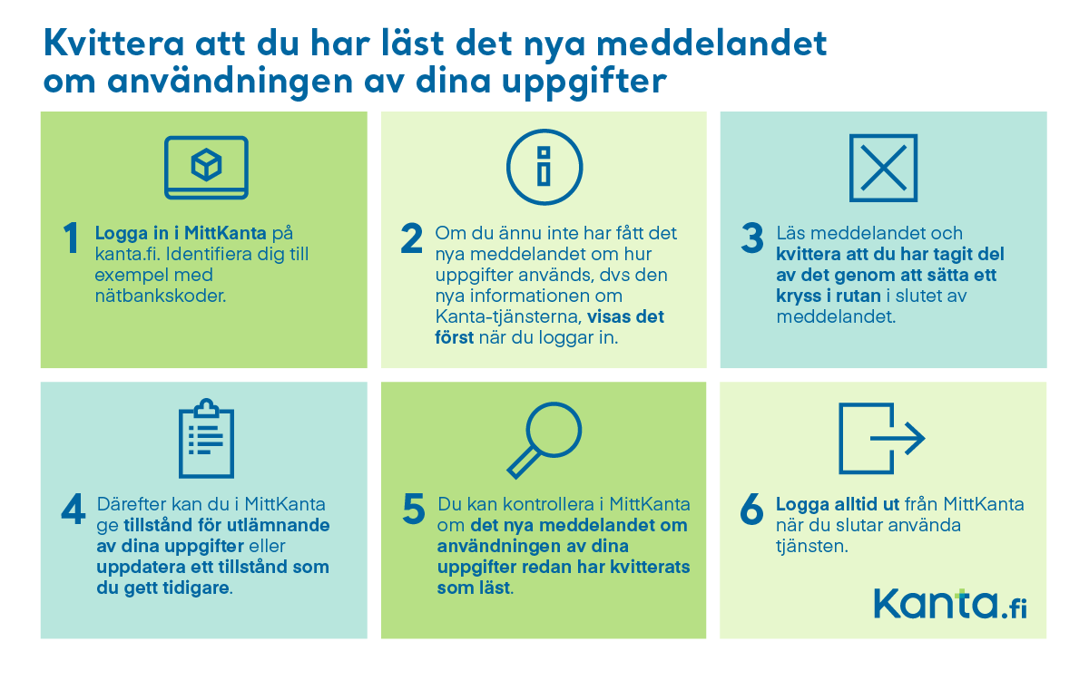 - Infograf över informationen om Kanta-tjänsterna, för meddelanden (png)(öppnas i ett nytt fönster)