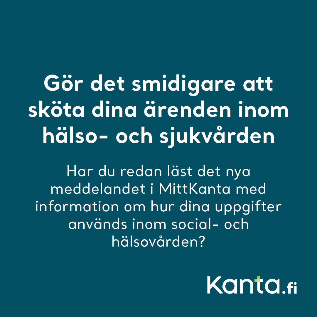 - Infograf över informationen om Kanta-tjänsterna, för meddelanden (png, på finska)(öppnas i ett nytt fönster)