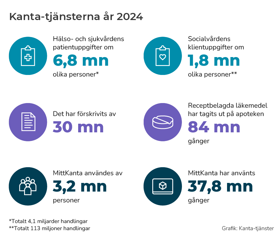 Största delen av finländarna använder MittKanta. År 2024 användes MittKanta av 3,2 miljoner personer sammanlagt 38 miljoner gånger.